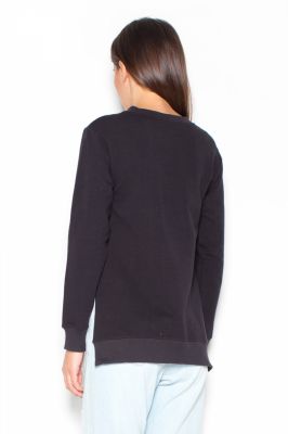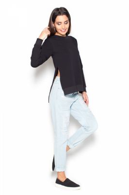 Bawełniana bluzka w kolorze czarnym, z długim rękawem i rozcięciami po bokach.