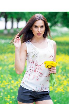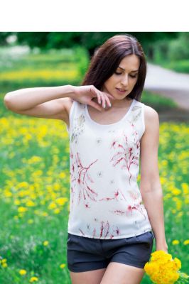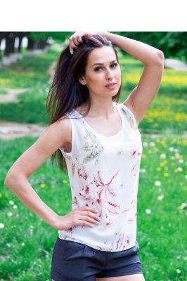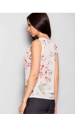 Bluzka o prostym kroju wykonana z szyfonu. Nie jest rozciągliwa. Model z okrągłym dekoltem, bez rękawów.