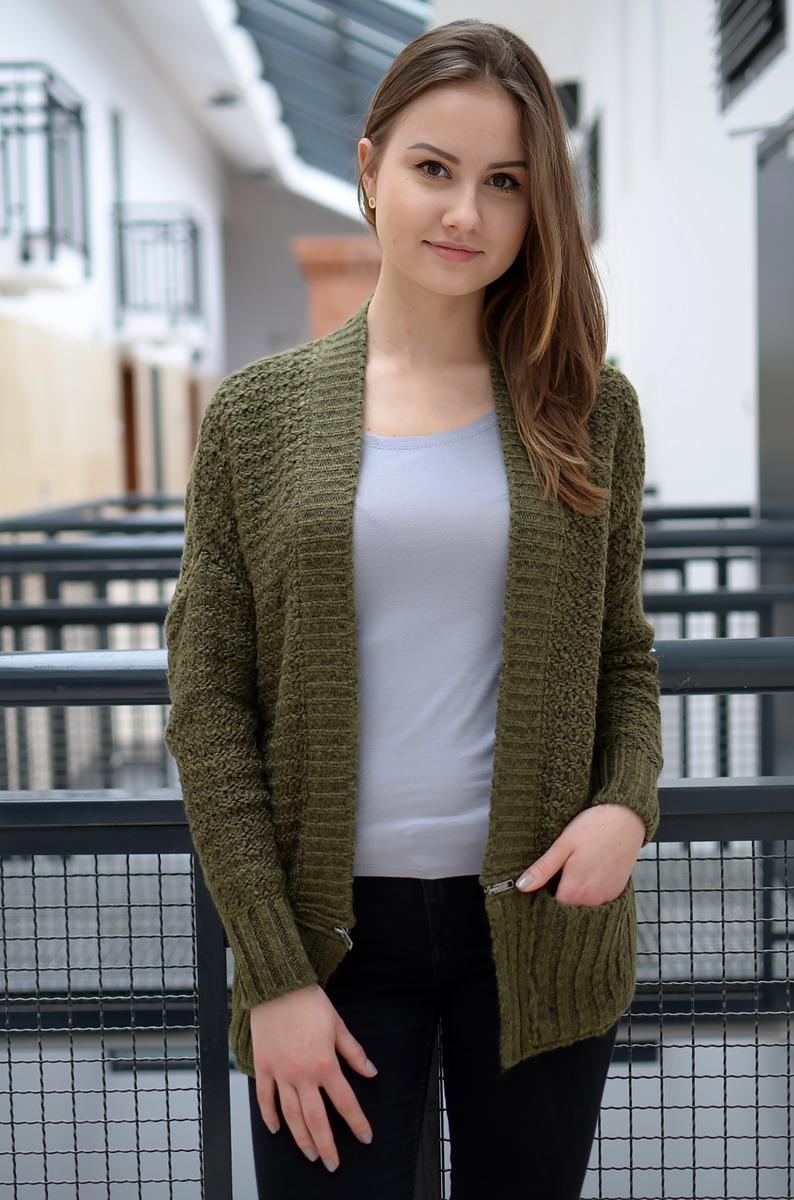 Strona głównaODZIEŻodzież damska 2(różne, mix)SwetryKlasyczny kardigan z kieszeniami ozdobiony zamkami z przodu