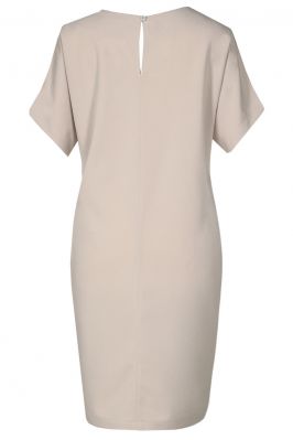 Kimono, luźna sukienka. Uszyta została z miłej w dotyku dzianiny. Dekolt okrągły. Rękaw kimono o długości 3/4. Tył prosty. Dół wykończony ściegiem krytym. Bez suwaka, bez podszewki. Z tyłu na szyi pęknięcie zapinane na mały guzik. Sukienkę polecamy kobietom w każdym wieku, idealna na co dzień do pracy, jak również na uroczyste prywatne spotkania.